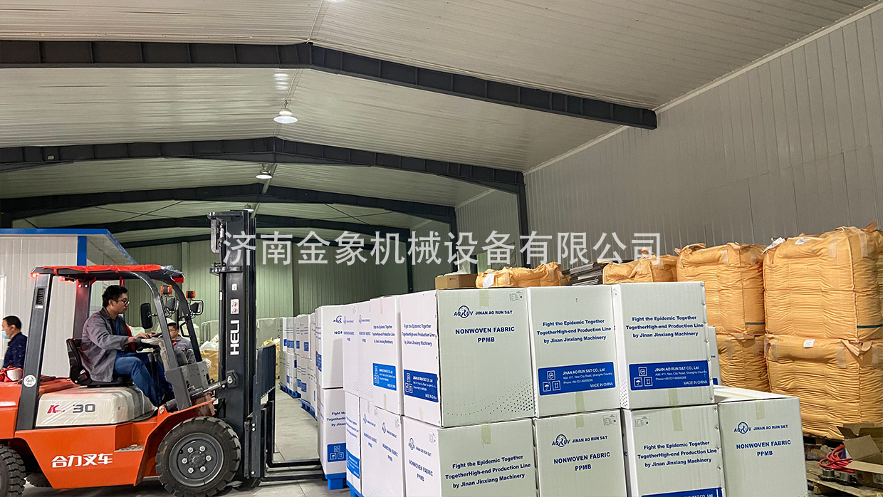 作為國內(nèi)水駐極熔噴布供應(yīng)商代表之一,金象機(jī)械生產(chǎn)研發(fā)的水駐極熔噴布成功銷往韓國,為當(dāng)?shù)胤酪呶镔Y生產(chǎn)提供了幫助,以下為發(fā)貨現(xiàn)場: