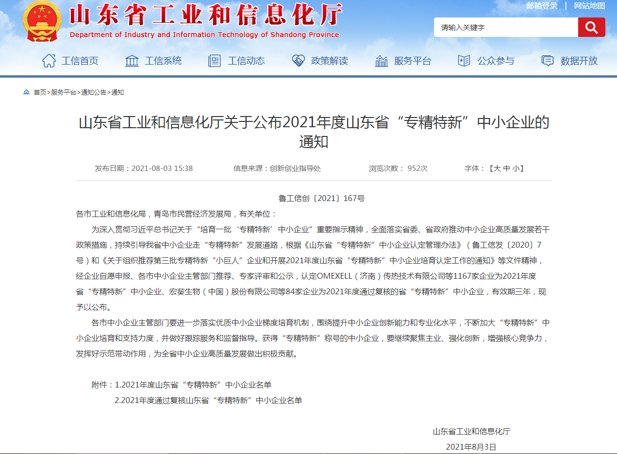 根據(jù)《山東省“專精特新”中小企業(yè)認(rèn)定管理辦法》(魯工信發(fā)〔2020〕7號)、《關(guān)于組織推薦第三批專精特新“小巨人”企業(yè)和開展2021年度山東省“專精特新” 中小企業(yè)培育認(rèn)定工作的通知》等文件精神,省工業(yè)和信息化廳組織開展了2021年度省“專精特新”中小企業(yè)培育認(rèn)定工作。經(jīng)嚴(yán)格審查,濟(jì)南金象機(jī)械設(shè)備有限公司順利通過2021年度省市兩級“專精特新”企業(yè)評審,成為2021年度山東省和濟(jì)南市“專精特新”企業(yè)。
